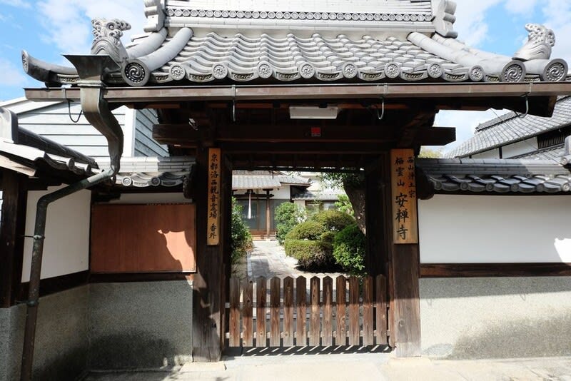 安禅寺はJR京都線桂川駅から東へ約1km ほどのところにある。近くを桂川が流れており、江戸時代には度々氾濫によってお寺が流されたと言う。その都度再建されて今に至っている。