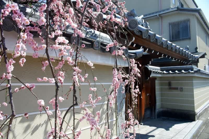 地福寺は千本丸太町の交差点から西北の方向にある。閉門されていて本堂や境内の様子は 一部しか見えず、よくわからなかった。境内の片隅から梅の木が高い枝を伸ばしており、それがしだれ梅として大きく垂れ下がっていた。ほぼ桃色の花で非常に風情のある光景を呈していた。この付近の多くのお寺には境内に木々があるものの、梅の木は他に見られなかったので一層目立つ存在として際立っていた。